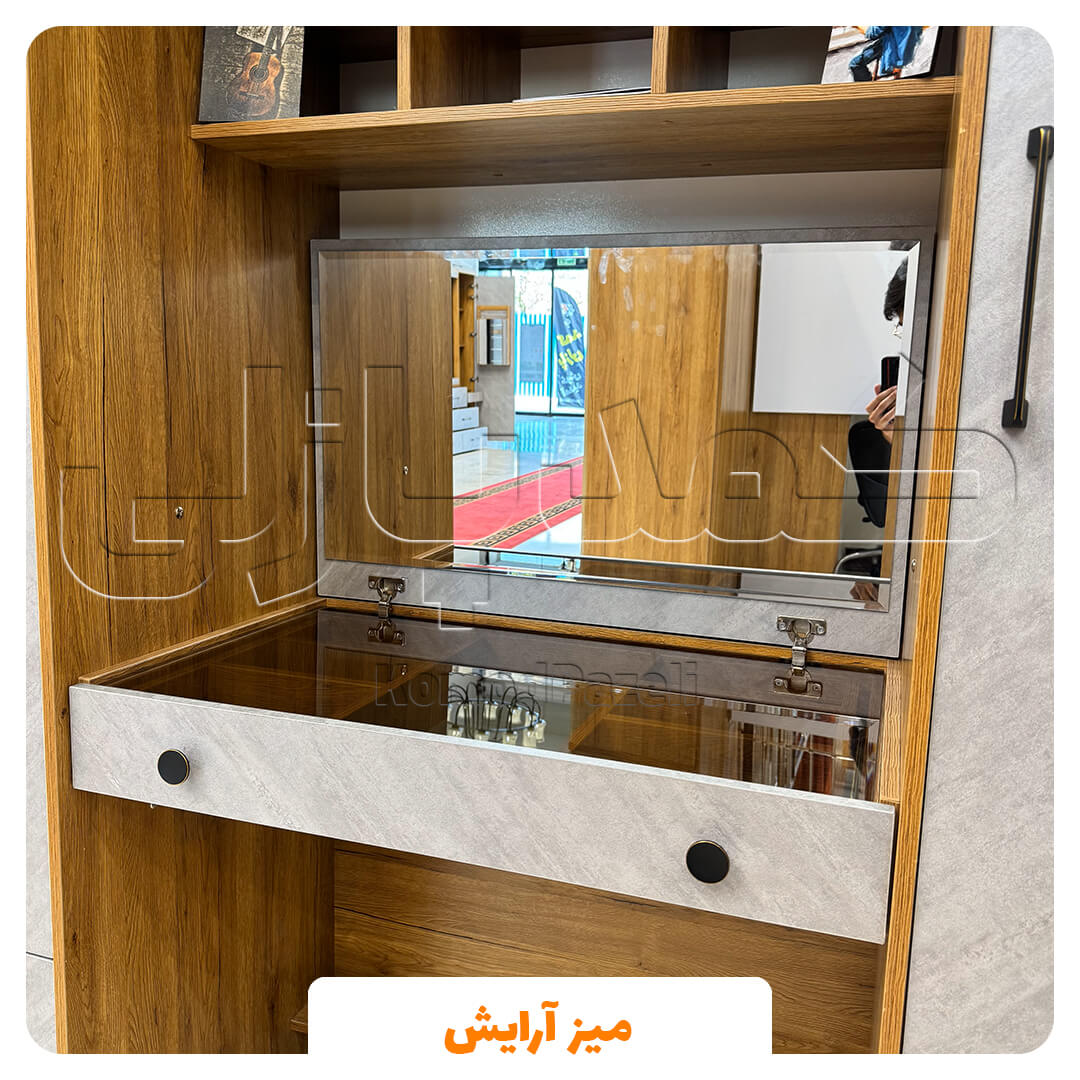 میز دابل تیبل | میز تحریر با صفحه بازشو آینه دار که به عنوان میز آرایش قابل استفاده است |